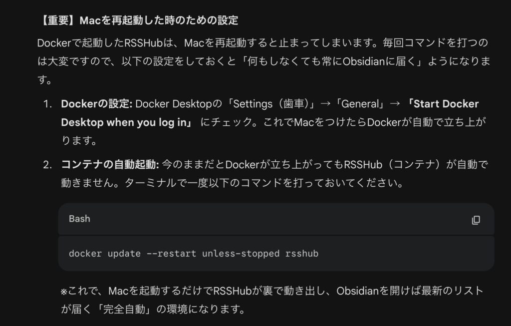 私はほぼ毎日PCを使います。RSSHubにlocalhostからアクセスすれば、どう考えても本人なので弾かれるリスクが格段に減ります。じゃあこれでええやんけ、がんばってPikapodsとかVercelとかいじらんでよかったんや!