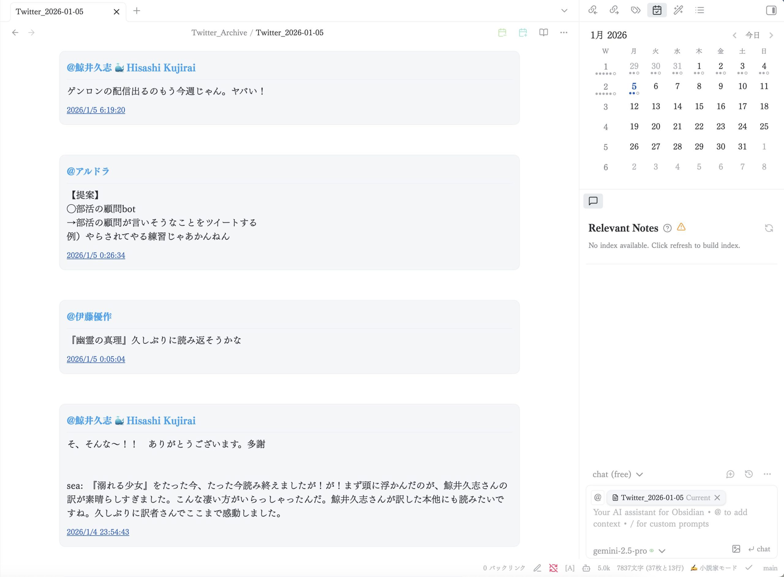 私はもう一度ノートに目を落とした。そうか、親鳥がいたのか、と思う。図の描き方も私とは少し異なっていて面白い。鳥卜の結果は「今日の一限は休講になる。あるいは開講されても出席する必要がない」。私はメールボックスを開いてみる。私が受けている講義ではないが、休講になった講義が……ある!