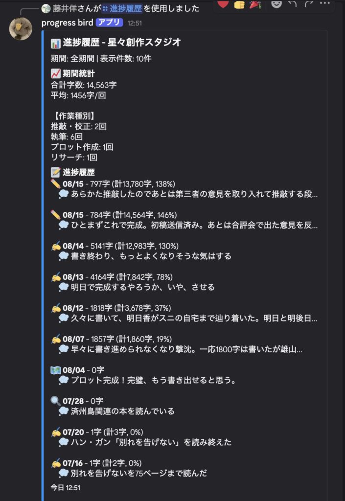 書くことがあまりにもない。小説やるか引っ越しやるか落ち込んでいるかで、ほかになんら活動は行えなかった一週間だった。直近で締切を抱えていた8/16提出期限の「星々創作スタジオ」に寄せる短篇は、8月12日から集中的に書き上げ、8月15日に提出した。